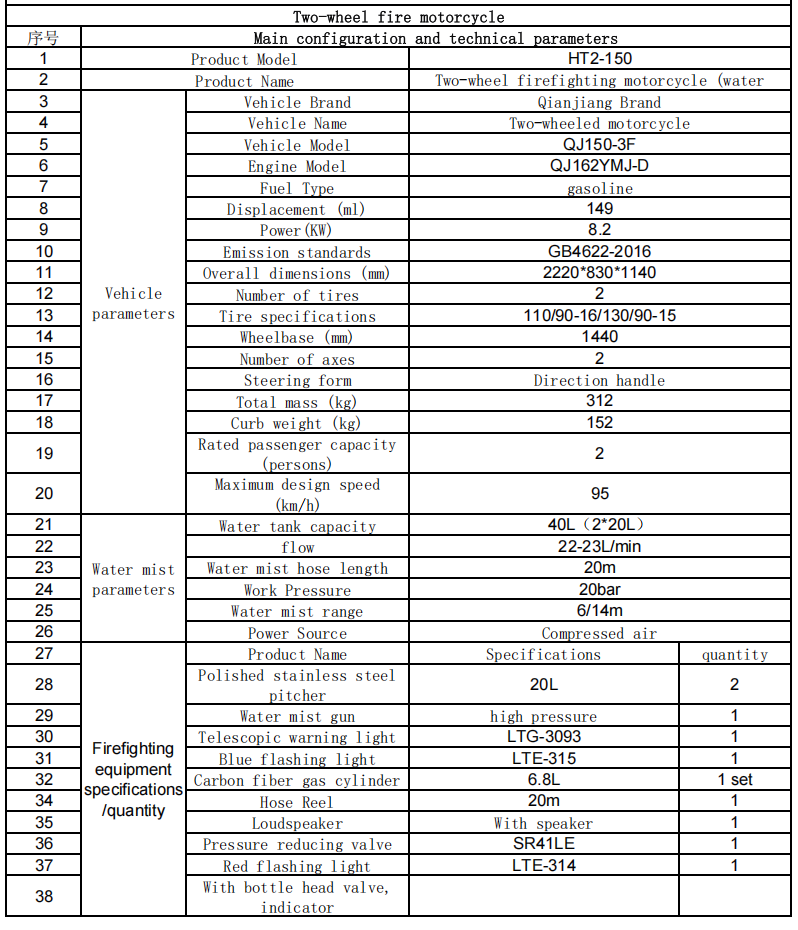Fordonskroppen är liten (vanligtvis cirka 2 meter lång och cirka 0,8 meter bred) och kan enkelt skyttla genom smala gator, gränder i gamla stadsområden, fotgängare, natursköna bergsvägar, stadsbyar och andra områden som stora brandbilar inte kan nå och lösa problemet med brandskyddstäckning i "Last Mile".